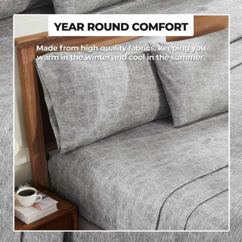 - Additional Features: Chambray plain weave is naturally soft to the touch and gets softer with each wash; Insulating and breathable to keep you warmer and more comfortable when the temperature drops. Elevate your style with the distinctive two-tone look of melange fabric – a lightweight, wrinkle-resistant choice that exudes sophistication. Available in Standard and King sizes to perfectly fit your bed.