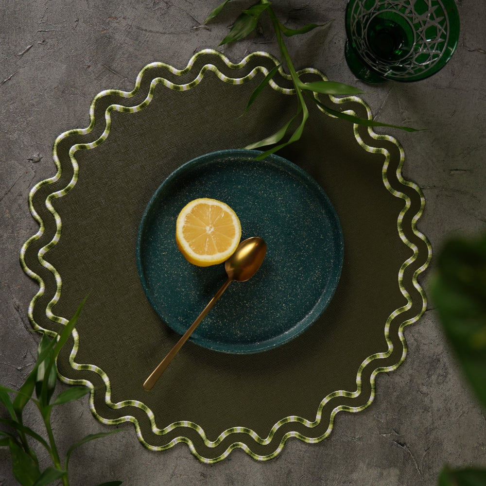 Elysian Dark Green Round Faux Leather Placemat
