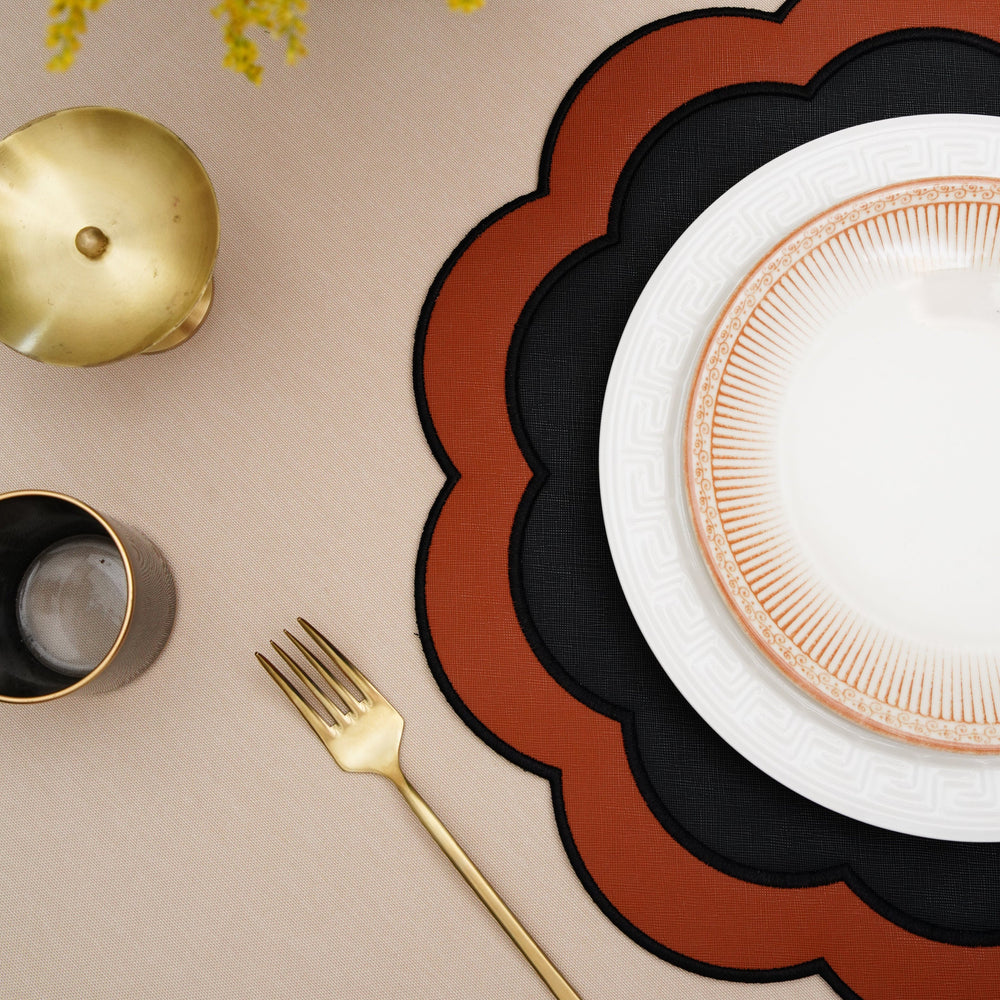 Serenity Black Orange Scalloped Faux Leather Placemats