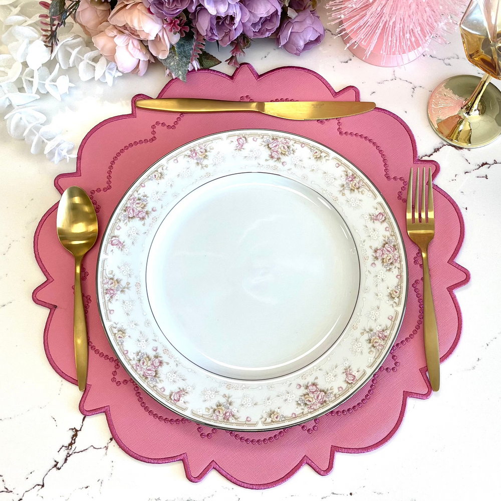 SOLSTICE PINK SCALLOPED FAUX LEATHER PLACEMAT
