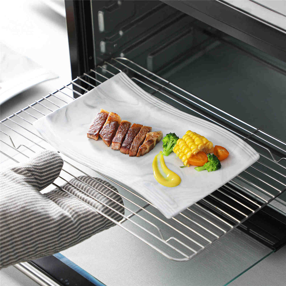 • Fine porcelain wavy-shaped rectangular plates, set of 2, ivory white/marble grey