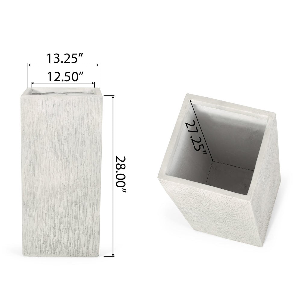 The MGO Planter is a durable and stylish container designed for outdoor spaces such as patios and gardens. Its sturdy construction and elegant antique white finish complement a variety of outdoor decor styles.
