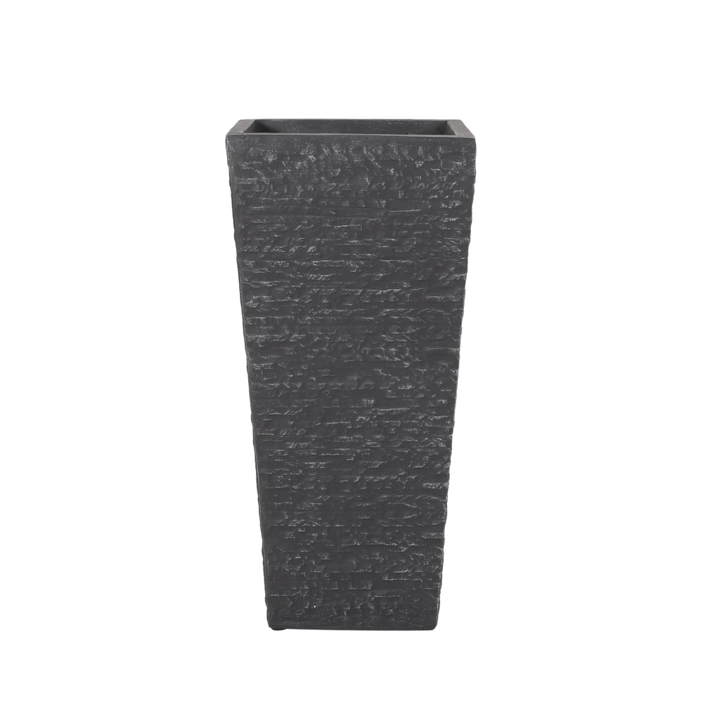 The MGO Planter is a tapered outdoor planter designed to enhance patios and garden areas with a sleek gray finish. It serves as a contemporary accent ideal for showcasing a variety of plants.