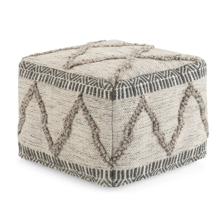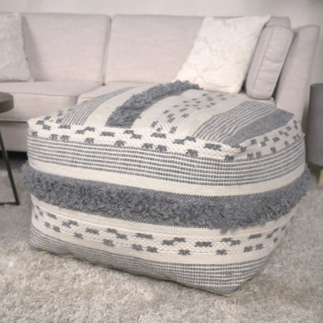 Briella - Square Woven Outdoor / Indoor Pouf - Grey / White