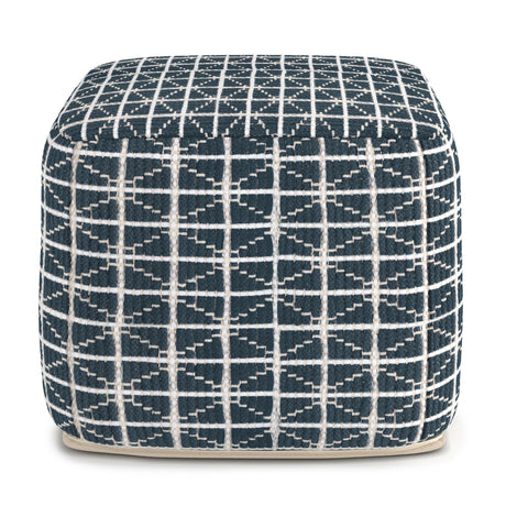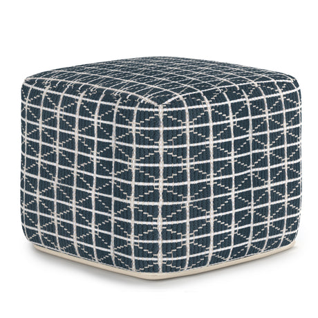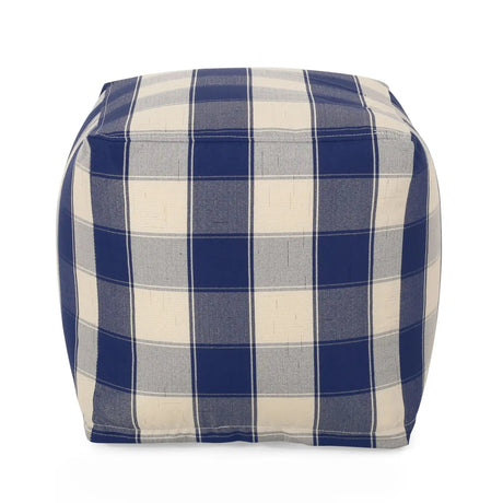 Dalm Fabric Square Pouf Ottoman with Polystyrene Beads Filling - Dark Blue / White