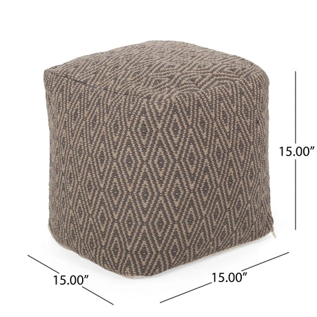 Lani - Handcrafted Fabric PoufDurable Cotton Square - Natural / Black