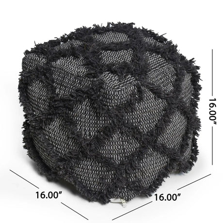 Amuleto Hand Loomed Cotton Pouf - Dark Gray / Brown