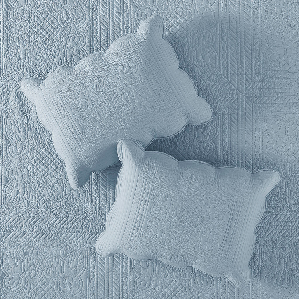 3 Piece Reversible Scalloped Edge Quilt Set Blue King/Cal King