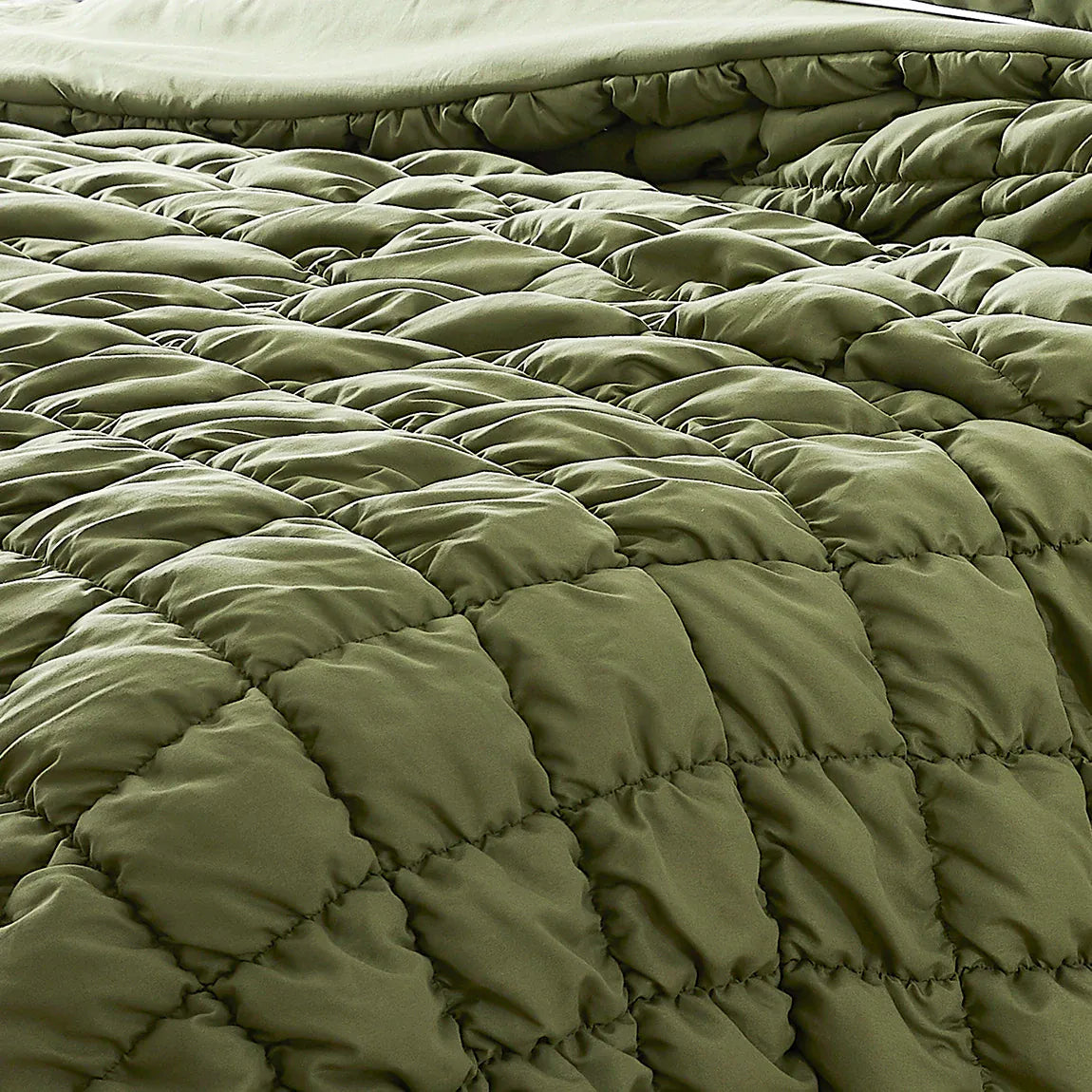 This Puff Comforter Set includes 1 comforter and matching pillow sham(s). This crinkle microfiber bedding set offers superior softness and comfort. The polyfill is perfect for hot sleepers and great as an extra layer for those cold sleepers who layer-up to keep warm.