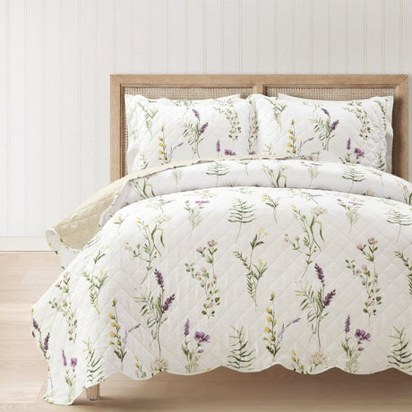 Watercolor Wildflower Scallop Edge Floral 3 Piece Quilt Set