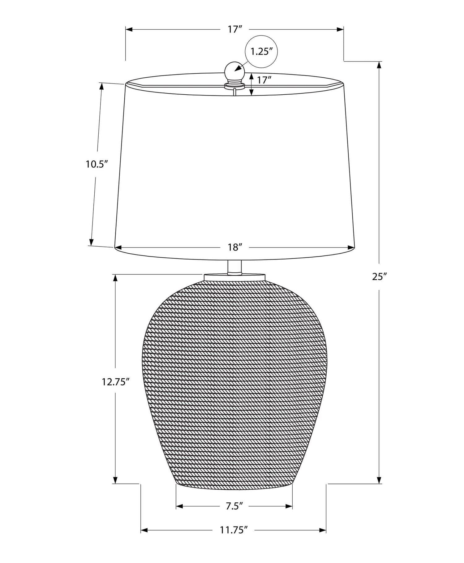 This 25-inch table lamp combines tropical-inspired charm with transitional design, perfect for living rooms, bedrooms, or offices. Its natural rattan base paired with a linen drum shade offers both style and functional lighting.