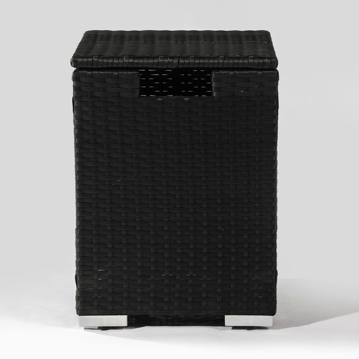 This 32-inch propane gas fire pit table is designed for outdoor patios and garden spaces, offering functional warmth paired with a stylish wicker aesthetic. It functions as a versatile coffee or dining table by day and a cozy fire pit by night.