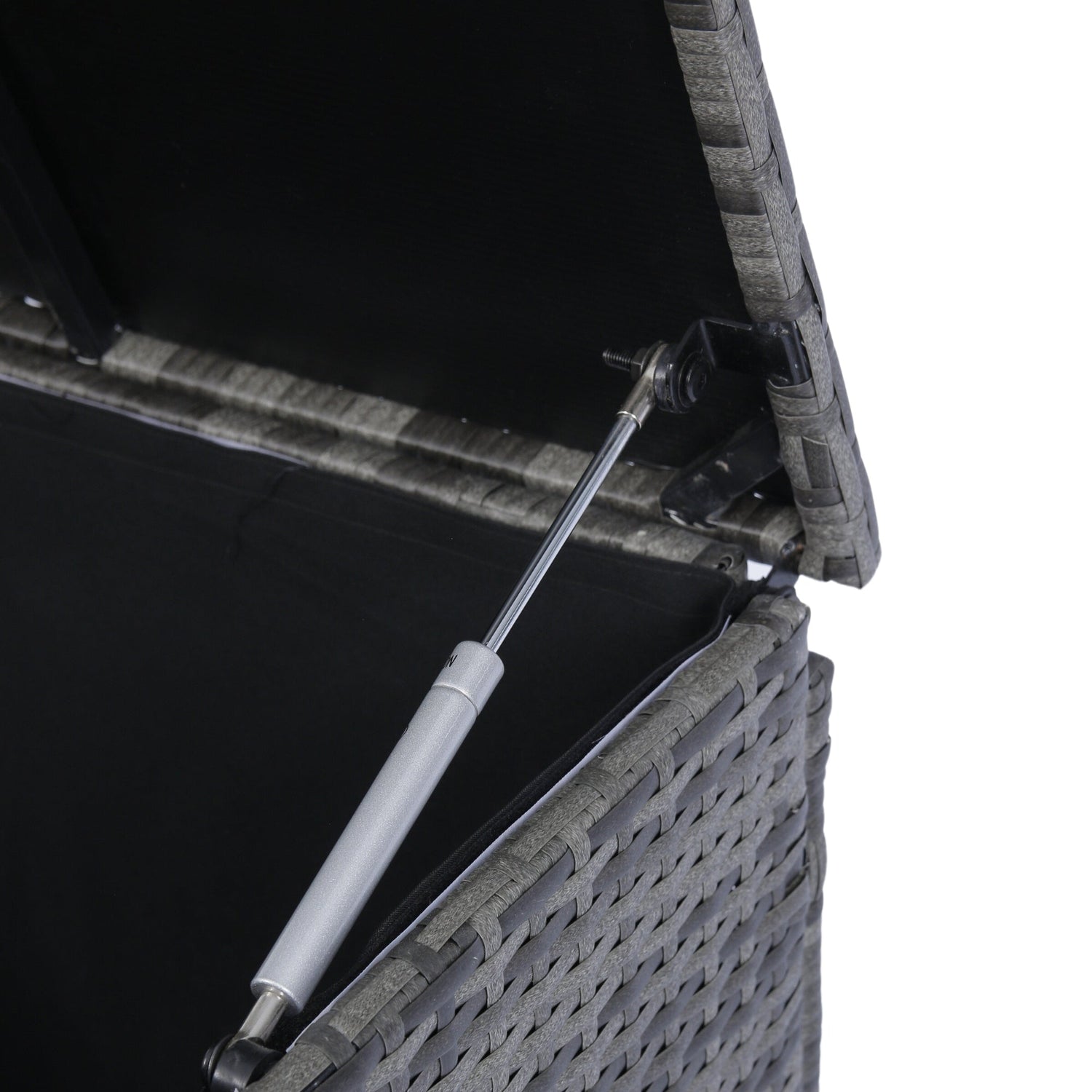 This 8 piece patio sectional sofa set is designed for outdoor spaces like gardens and patios, offering comfortable seating combined with practical storage in a stylish arrangement.