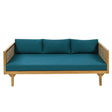 The Claremont 3 Seater Daybed features a sturdy acacia wood frame and stylish rattan armrests, designed to enhance your outdoor living space with both comfort and sophistication.
