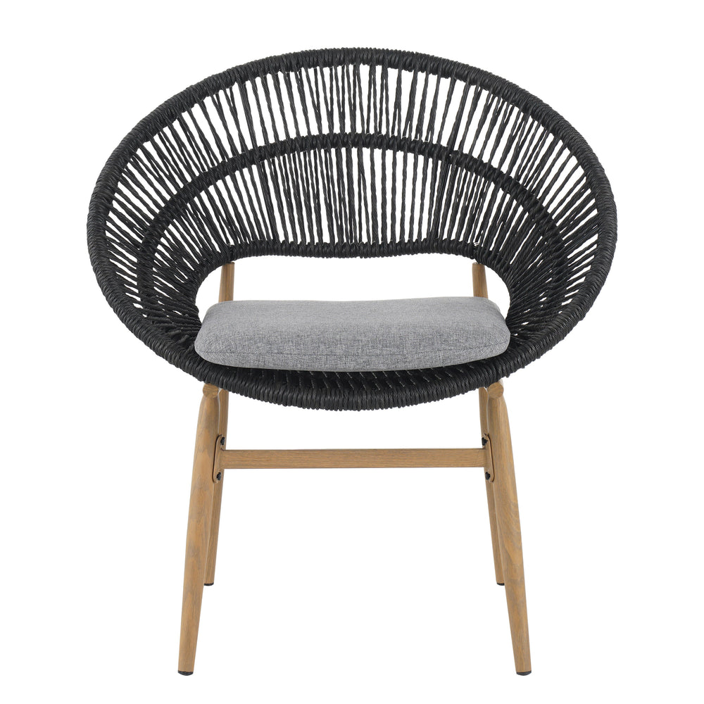• Materials: Dark gray PE rattan, teak-finished legs, iron frame, and fabric cushions