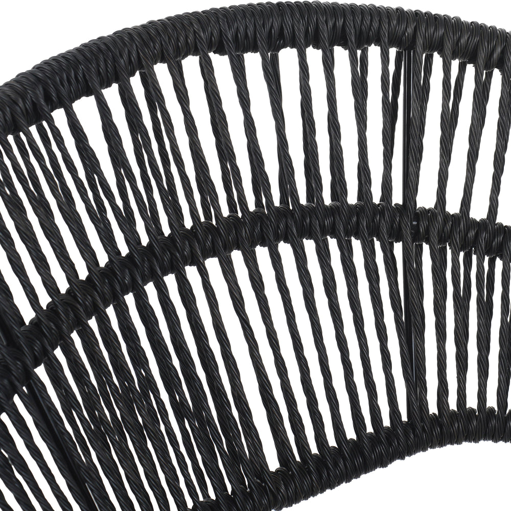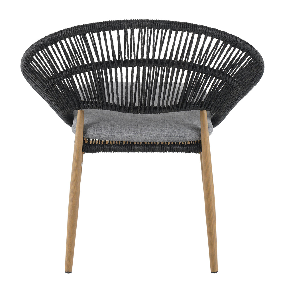 • Design: Thermally transferred teak legs with a funnel-shaped iron frame draped in dark gray PE wicker