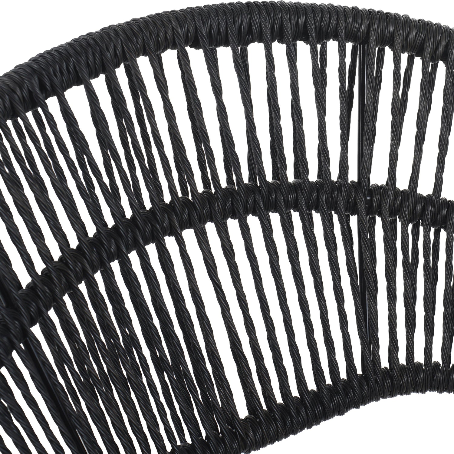 • Sophisticated Material Contrast: Thermally transferred teak legs ground this chair in organic warmth while a sleek funnel-shaped iron frame draped in deep-gray PE wicker creates a striking juxtaposition of textures—modern industrial edge meets natural elegance.