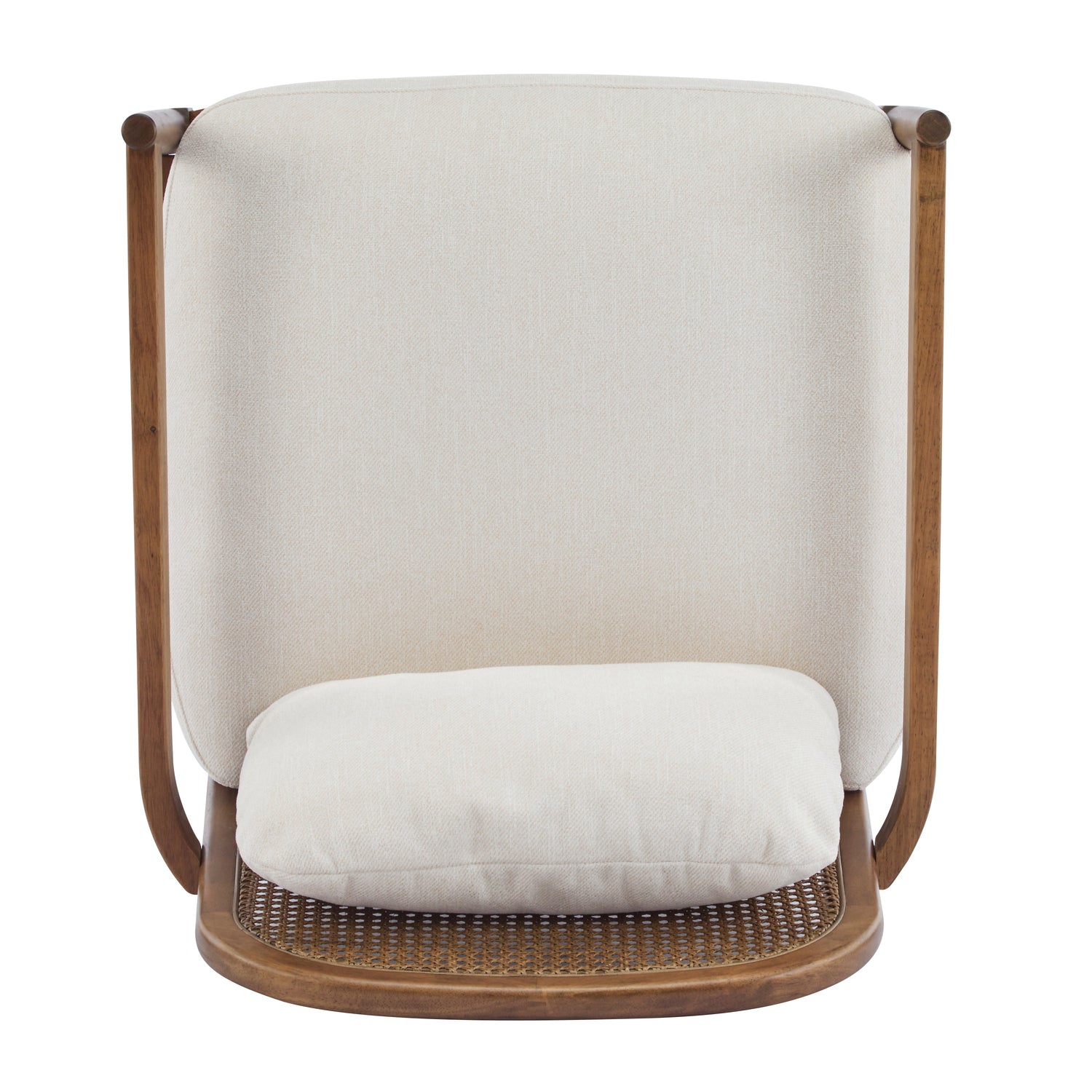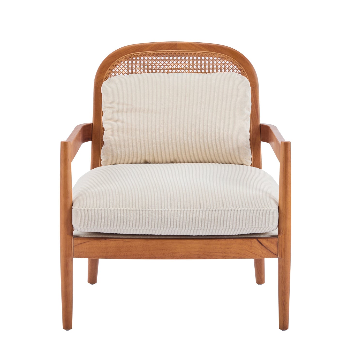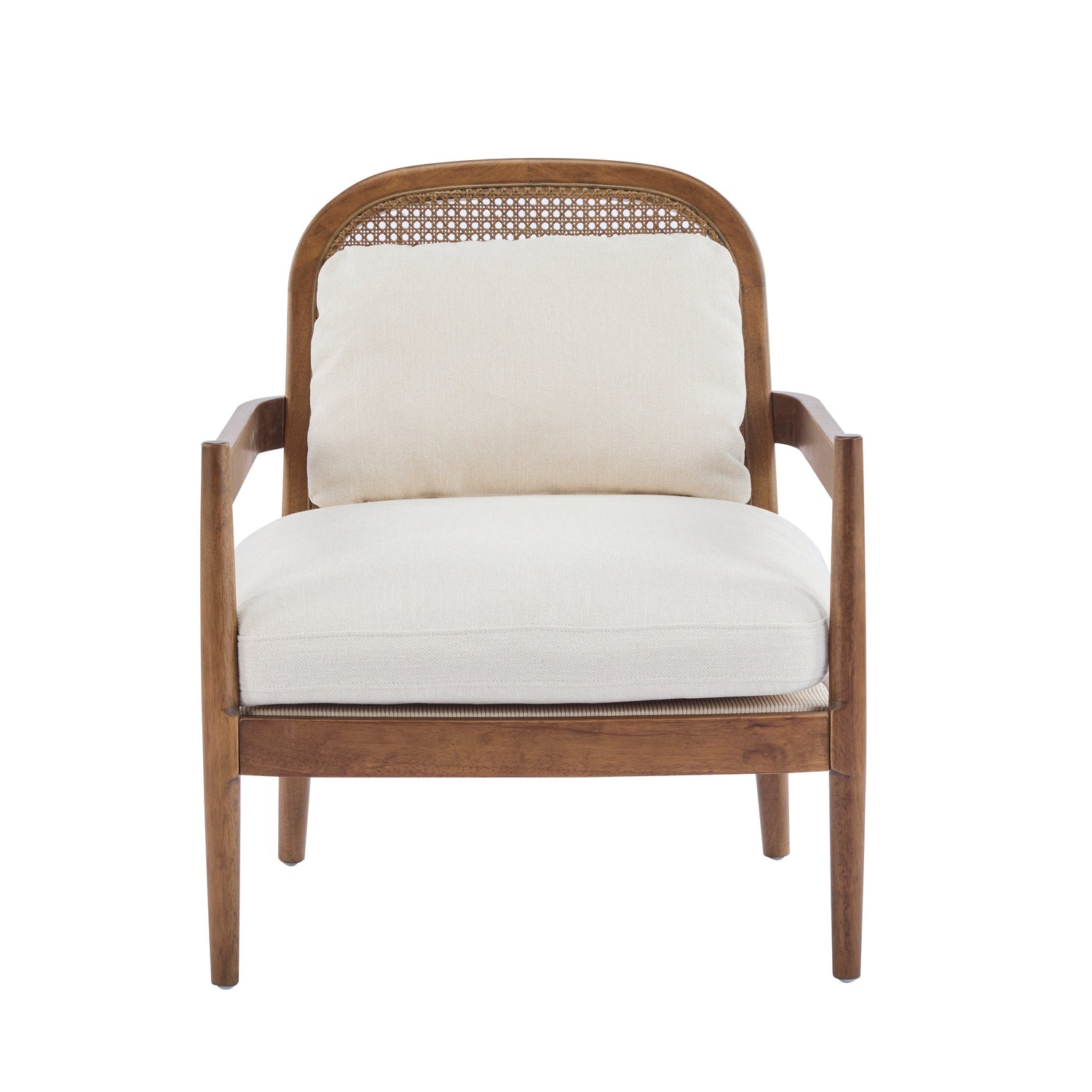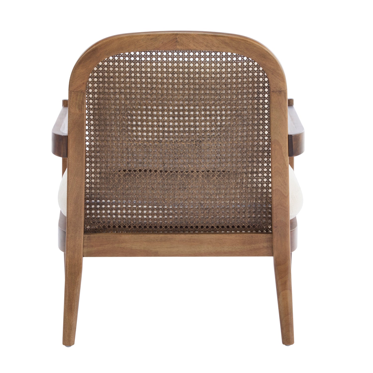 The Elliston Accent Chair set includes two mid-century modern style chairs featuring solid wood frames and rattan backrests. These chairs are ideal for enhancing living rooms, bedrooms, or reading nooks with both comfort and style.