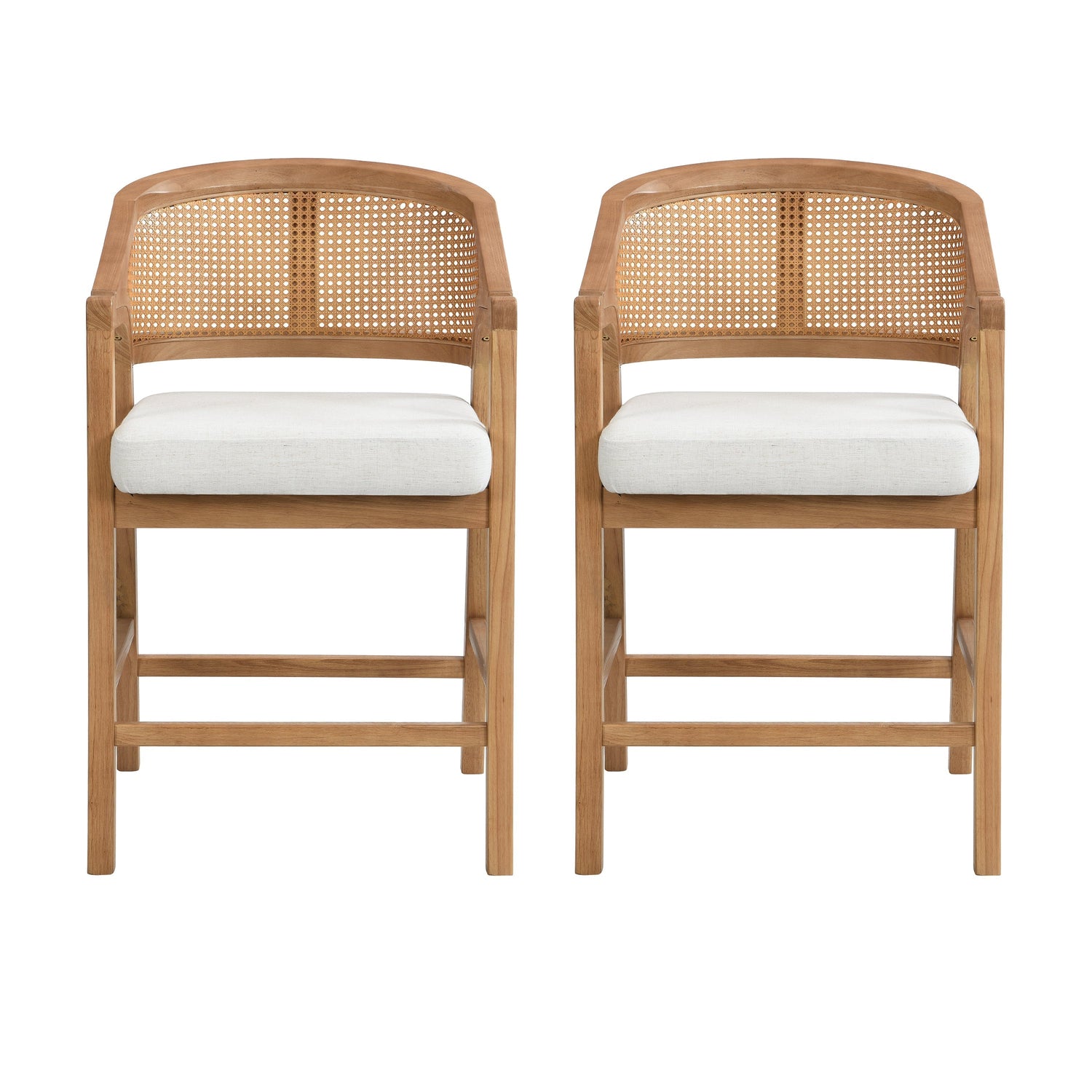 Enhance your kitchen or dining area with this set of 2 counter stools featuring sturdy wooden frames and woven rattan backs. These stools offer functional comfort while complementing mid-century modern interiors.