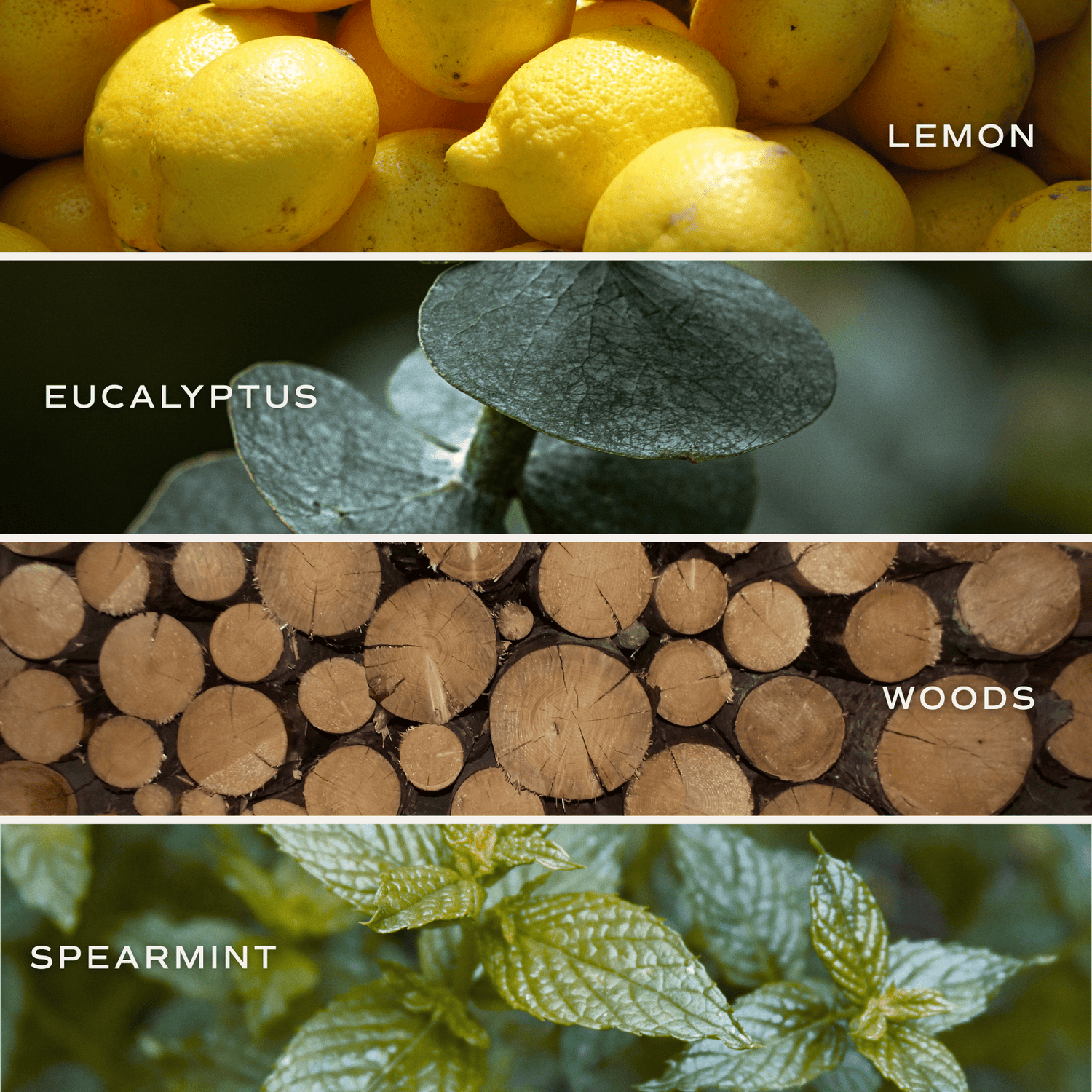 - Middle: Eucalyptus, Parsley, Lavender, Spearmint