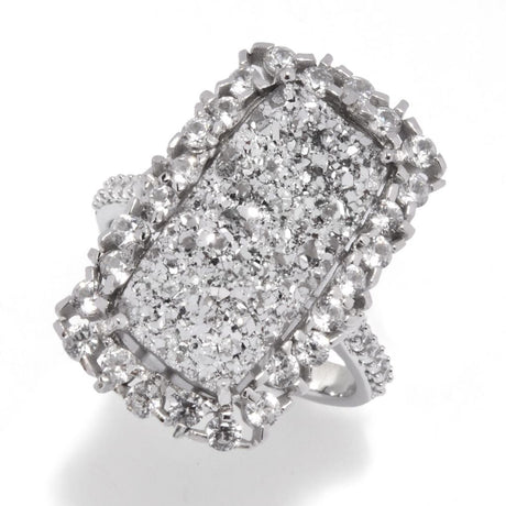 • MUSE Sterling Silver 18x9mm Drusy & White Zircon Elongated Ring