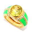 18K Gold Plated 10x8mm Choice of Gemstone & Zircon Halo Enamel Band Ring