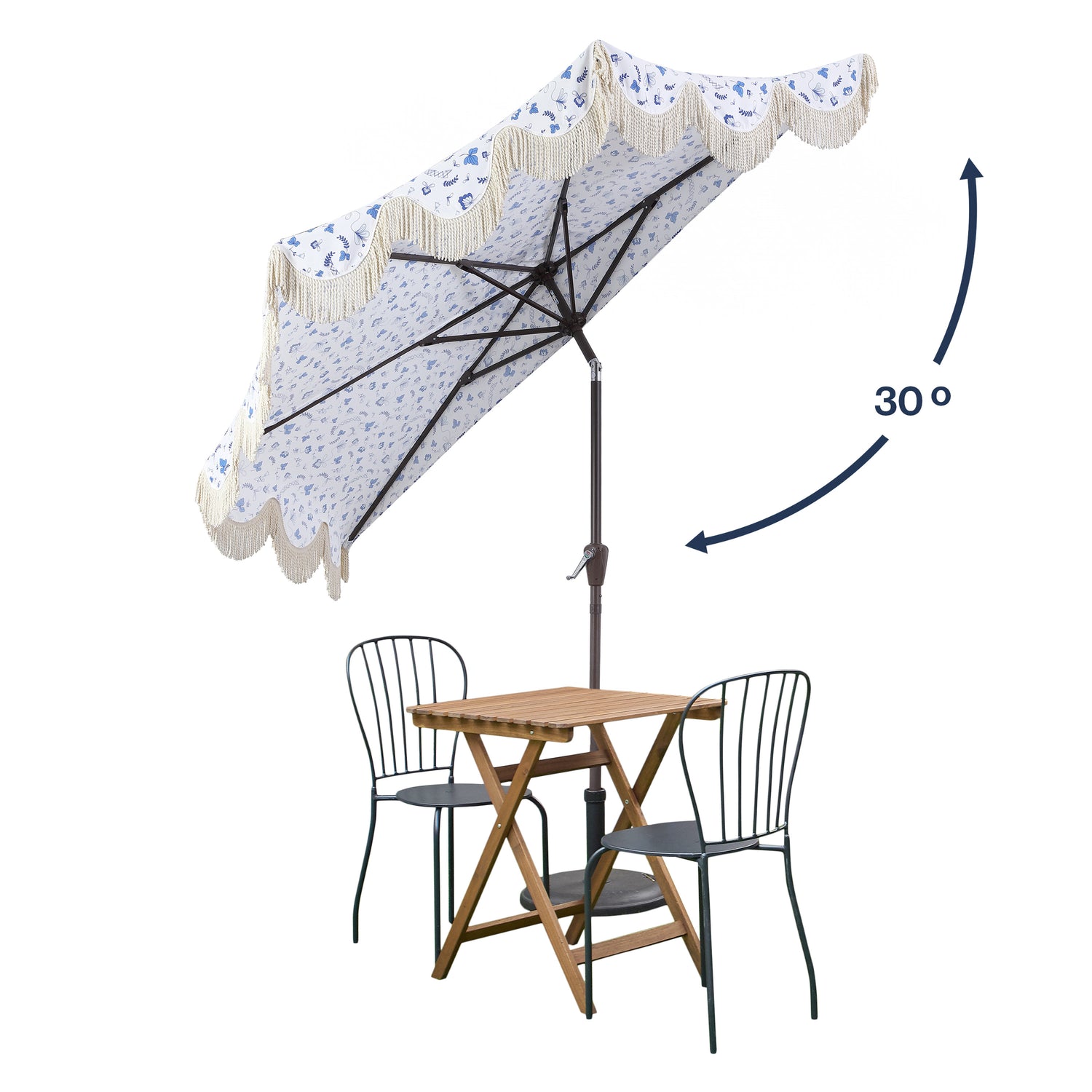 Classic Striped Patio Umbrella with Tilt – Light Blue & White with Fringe