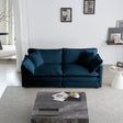 Modern Fabric Loveseat Sofa Couch for Living Room, Upholstered Large Size Deep Seat 2-Seat Sofa with 4 Pillows, Blue
