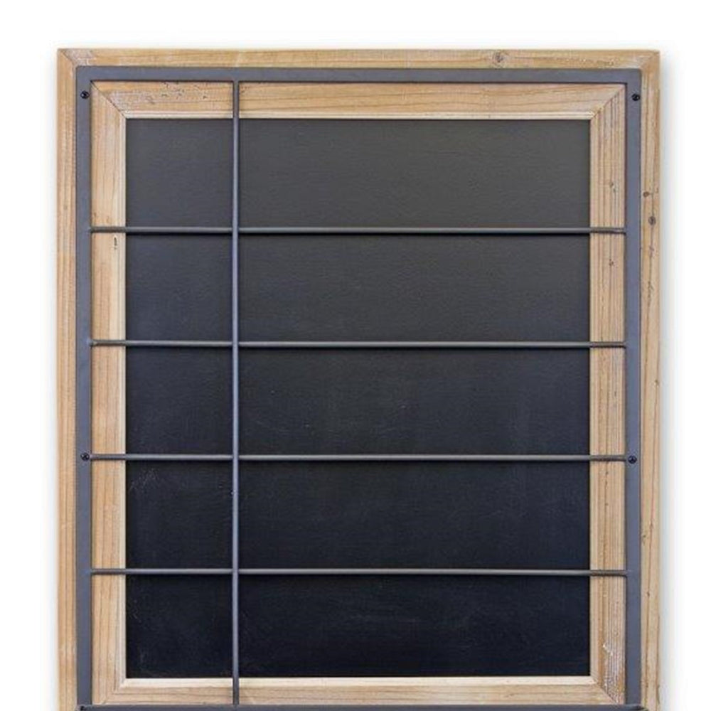 - Classic blackboard surface paired with natural wood tone and metal hooks