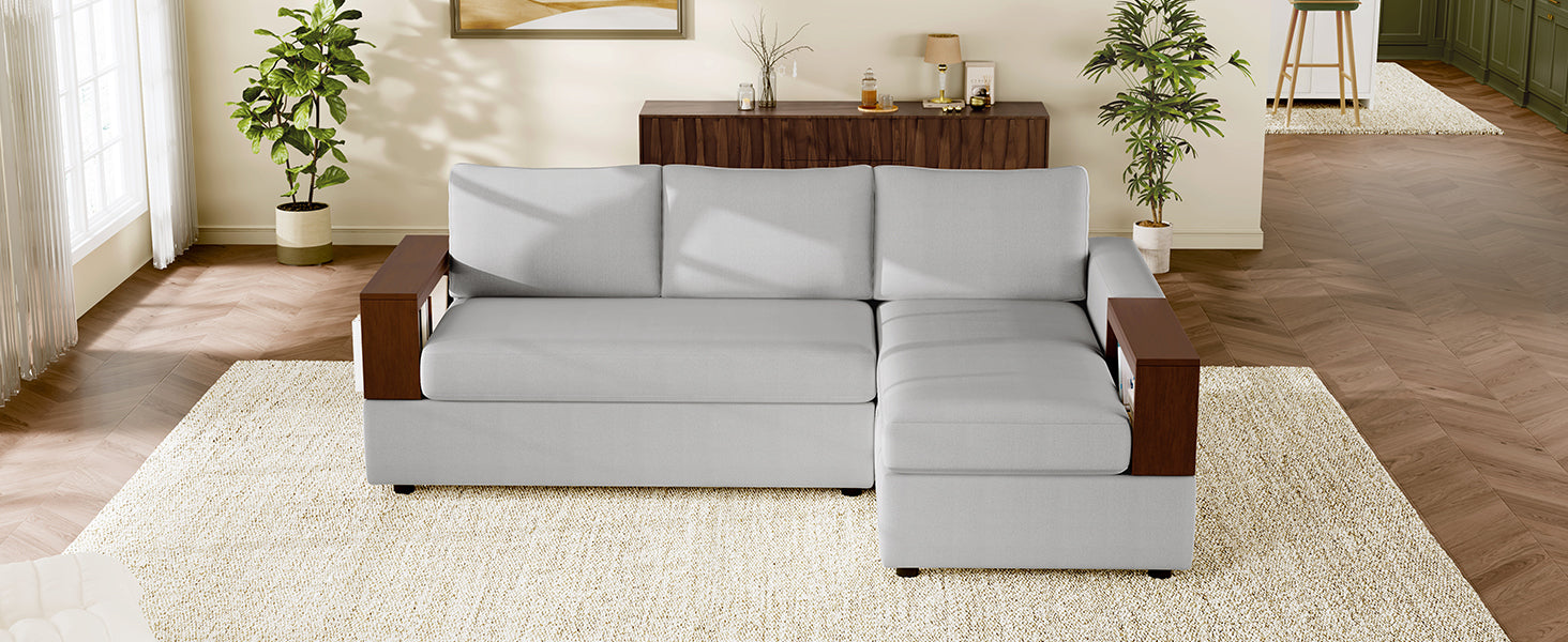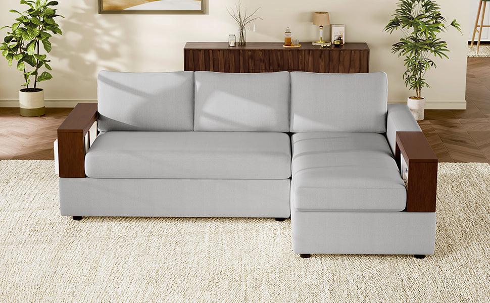 - Reversible Armrest - The sofa comes with a reversible armrest design. The square armrest and a rubber wood storage rack can be exchangeable. This innovative feature allows users to easily switch between different storage configurations, providing versatile functionality. Whether you're storing remotes, magazines, or snacks, the reversible design ensures that the storage rack can be adapted to suit your needs and preferences.