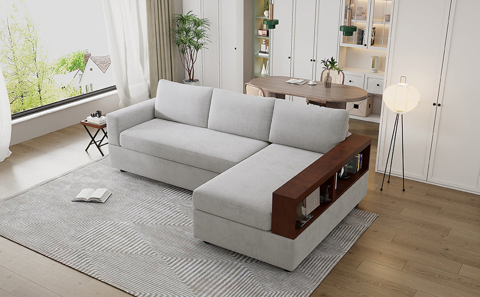 The sofa comes with two rubber wood storage racks, Providing versatile storage functionality, such as remotes, magazines, or snacks,etc.