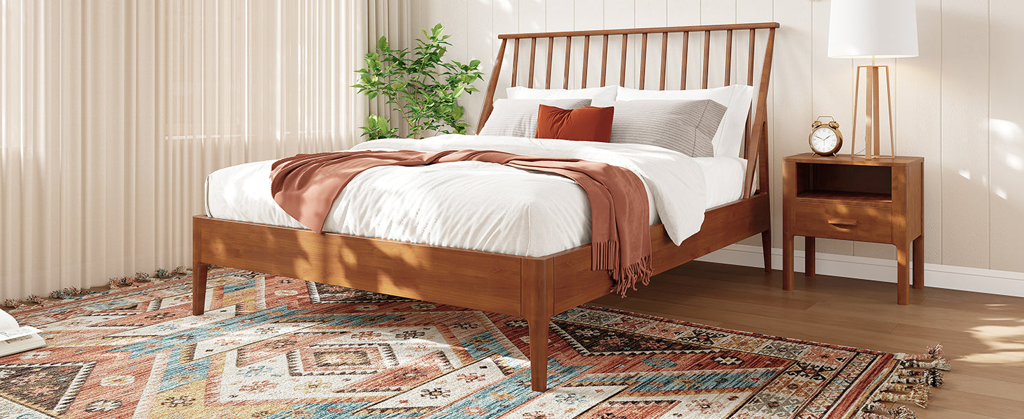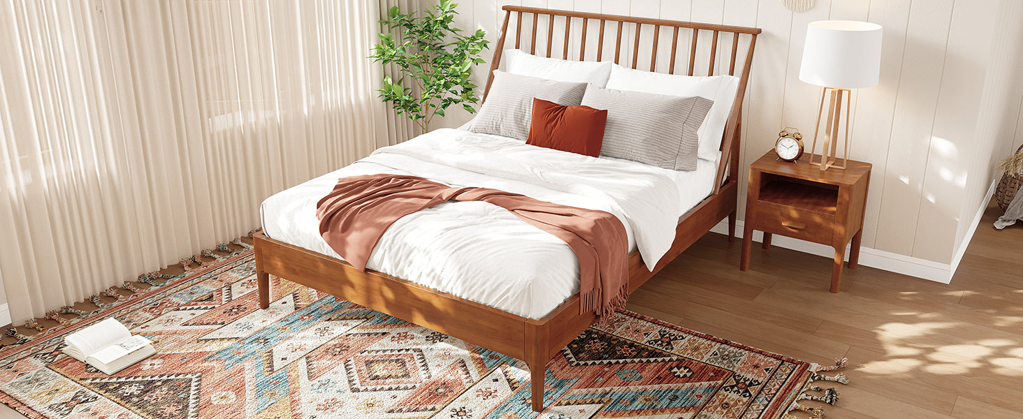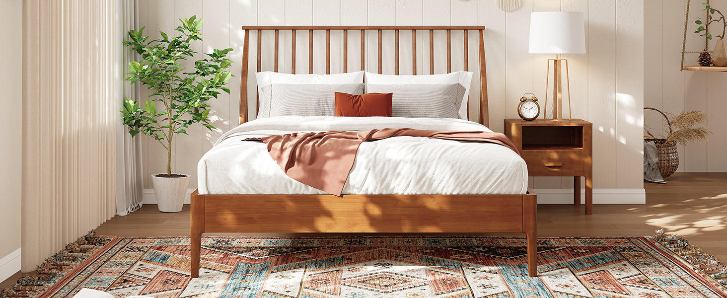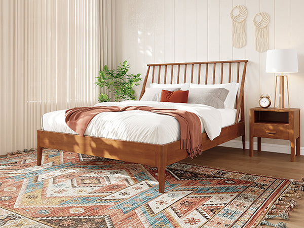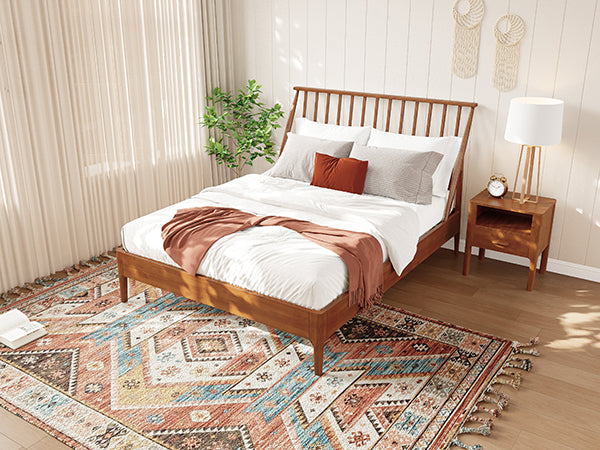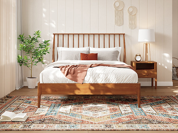 • Bohemian Spindle Design: A tall 46.5' spindle headboard delivers a bold boho statement with airy lines and natural texture.