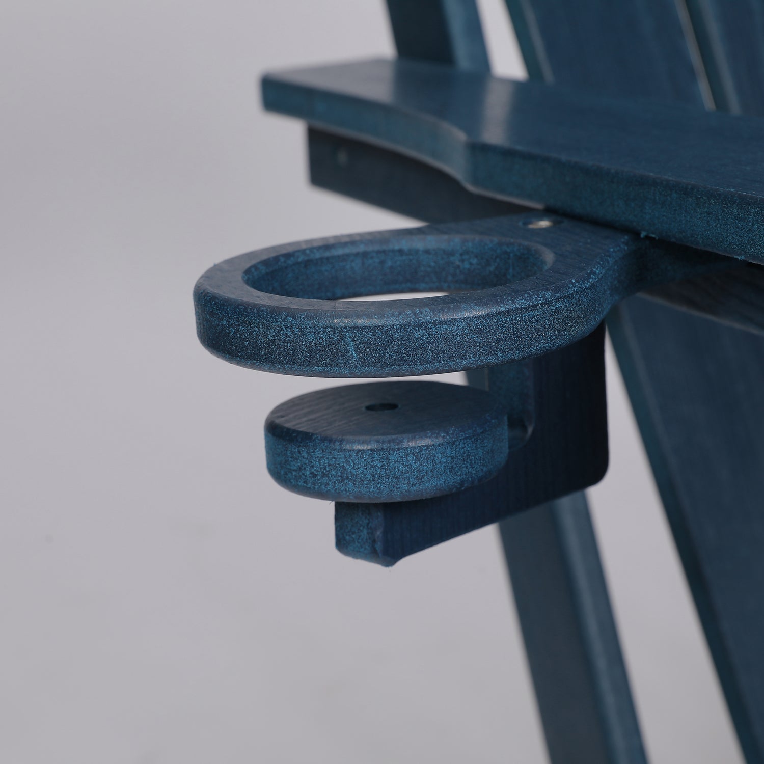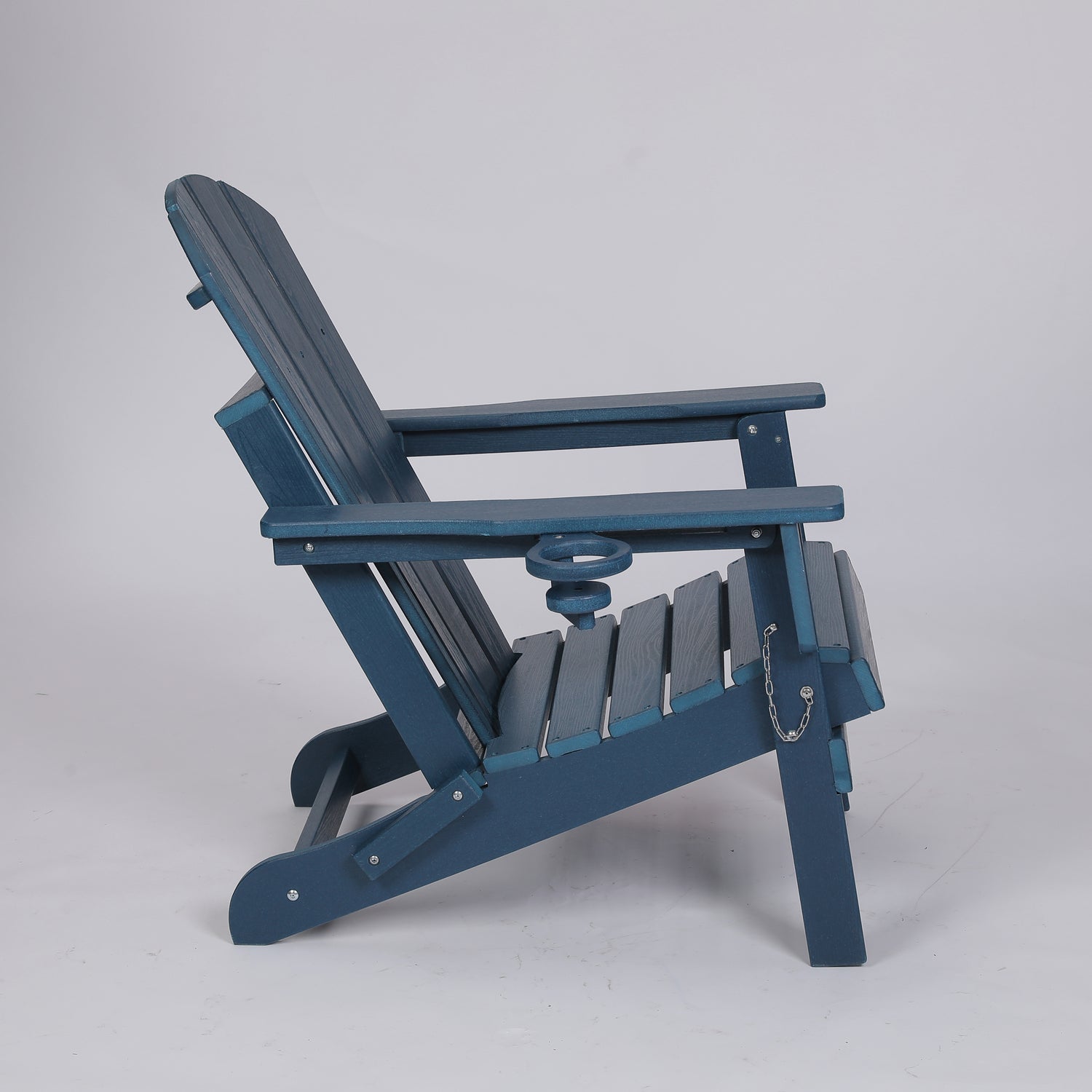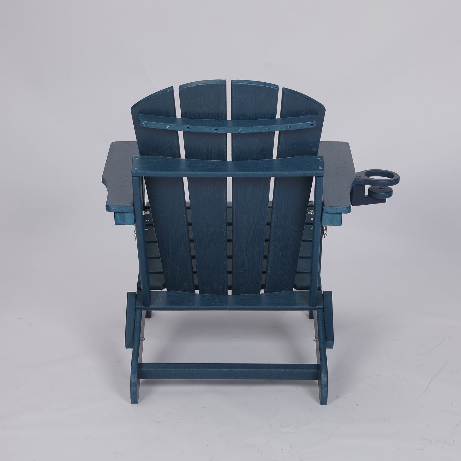 Folding Adirondack Chair with Dual Cup Holder - Composite Adirondack Chair with Wood Texture-Navy Blue