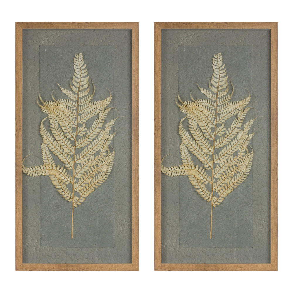 The Dried Fern Frame Set of 2 offers stylish wall accents with rustic green and beige tones, perfect for enhancing the aesthetic of any indoor living space or office.