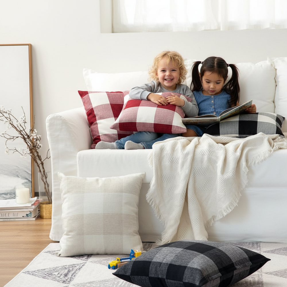 Add a fresh, cozy touch to your home with these modern buffalo-check pillow covers. Made from soft, durable woven fabric, they bring bright color and simple style to sofas, beds, and reading corners. The classic check pattern blends easily with farmhouse, modern, or minimalist decor.