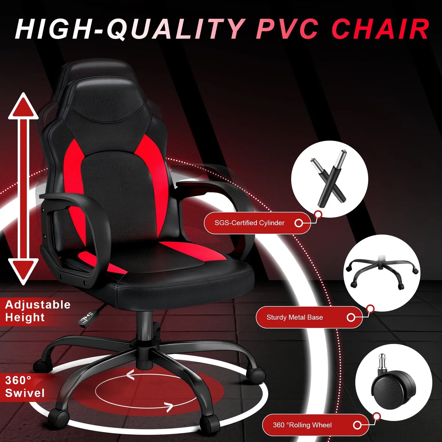 Ergonomic PU Leather Gaming Chair Swivel Adjustable Office Desk Chair Red