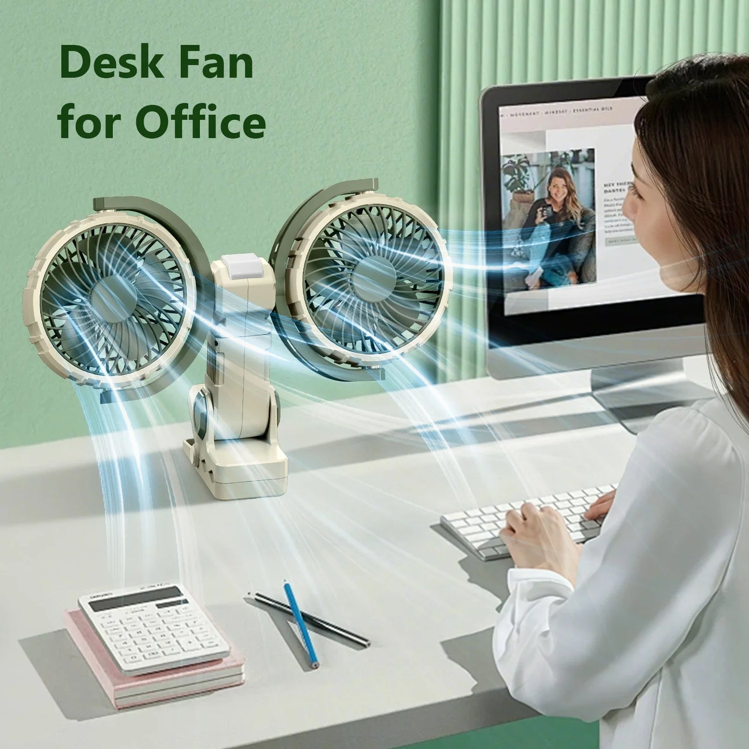 • Dual Head Design – Two adjustable fan heads for wider airflow coverage