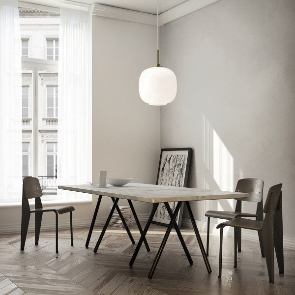Enhance your interior with this refined brass pendant light, designed to deliver both targeted illumination and a warm ambient atmosphere. The open lower design directs light downward for practical use, while the upper structure gently diffuses light across the room. Its sleek brass finish pairs effortlessly with modern, minimalist, and contemporary interiors that highlight metallic accents.