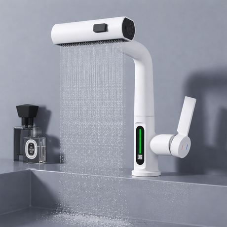 Pull Out Waterfall Kitchen Faucet Digital Display Hot Cold Mixer Sink Tap