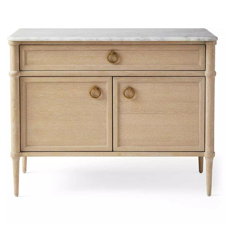 36" Oak Veneer Sideboard with Carrara Marble Top & Brass Pulls