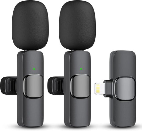 Wireless Lavalier Microphone for iPhone iPad Dual Clip On Mic 2 Pack Lightning