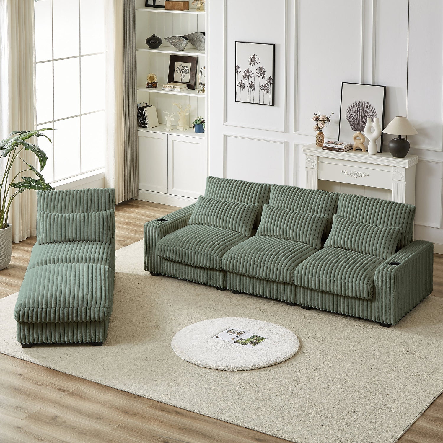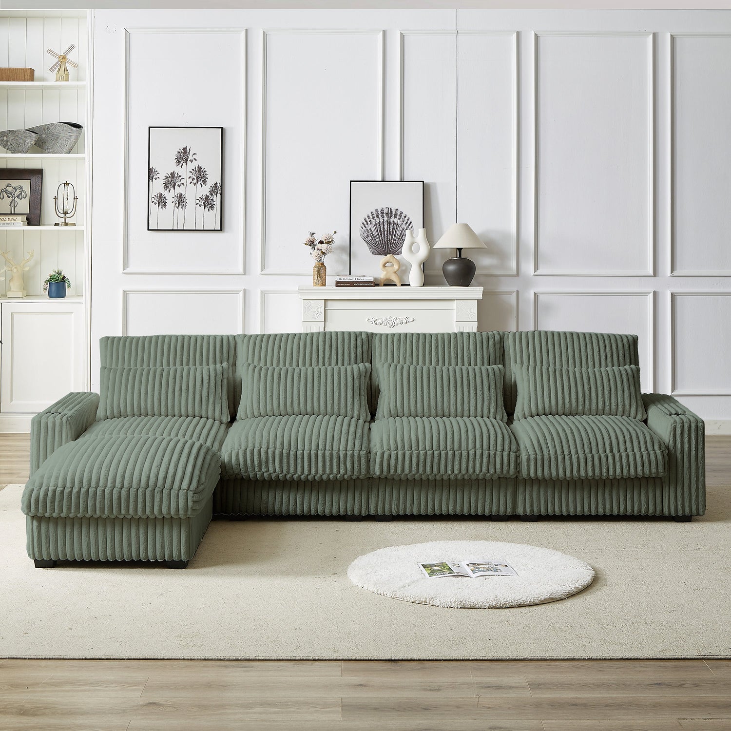 126-inch Corduroy With Cup Holder Super Large L-Shaped Sofa