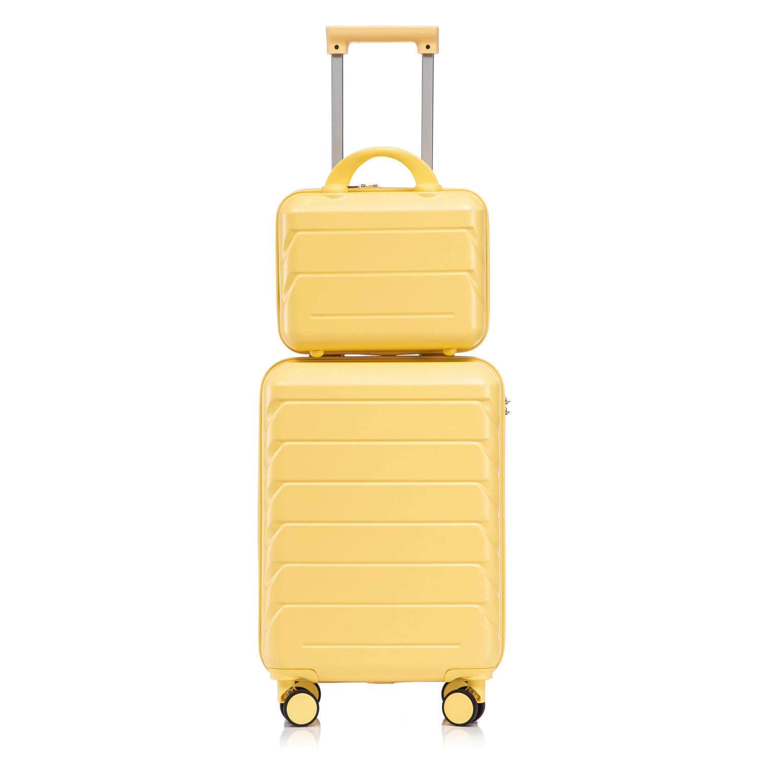 This versatile 2-piece ABS luggage set is designed for convenient and stylish travel. It includes a 20' suitcase and a 14' cosmetic case, ideal for weekend getaways, offering durability and practical features for effortless packing and mobility.