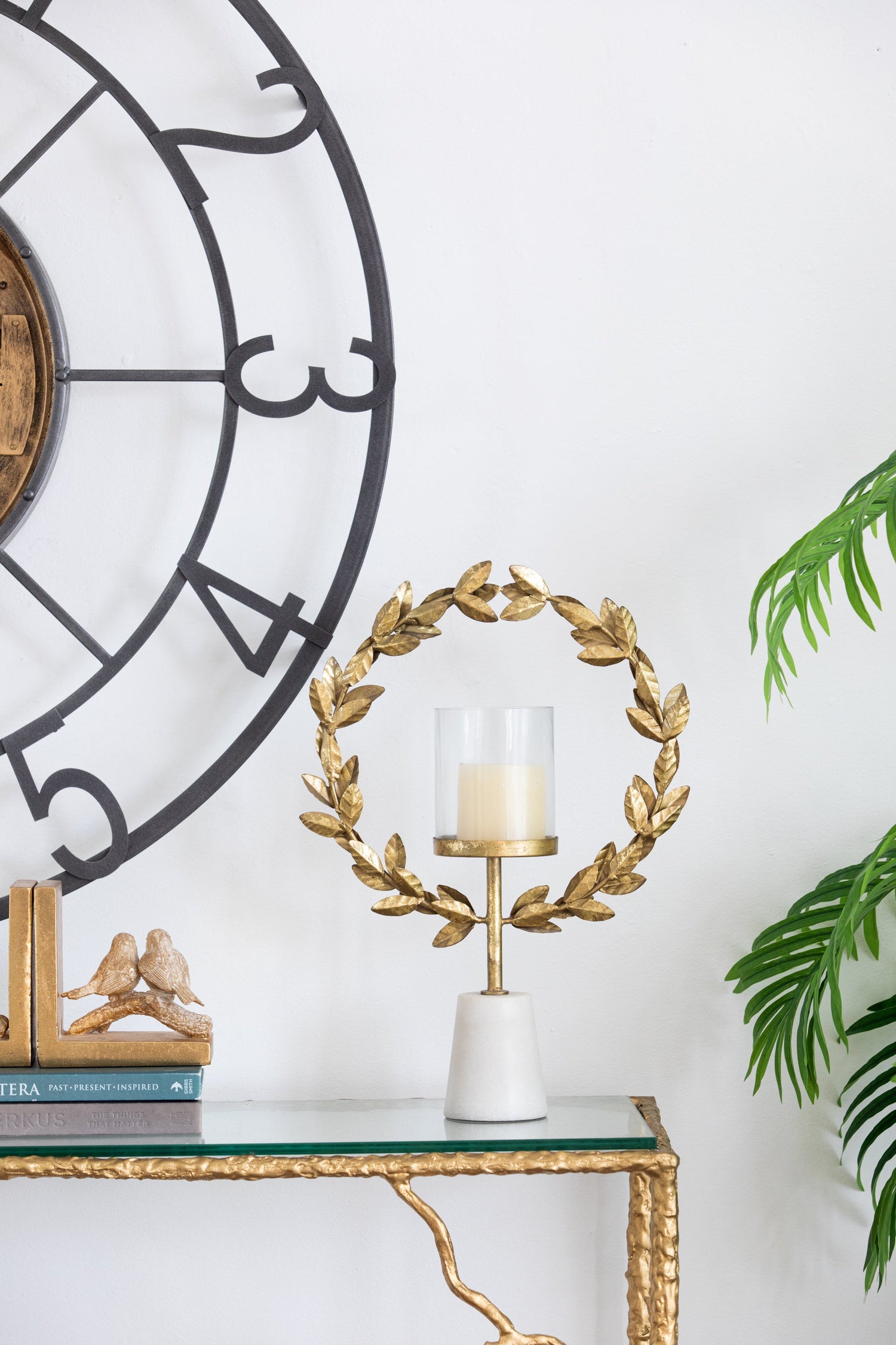 This iron floral hurricane with a marble base combines vintage style and natural floral elements, perfect for adding decorative charm to living rooms, dining tables, bedrooms, and other indoor spaces.