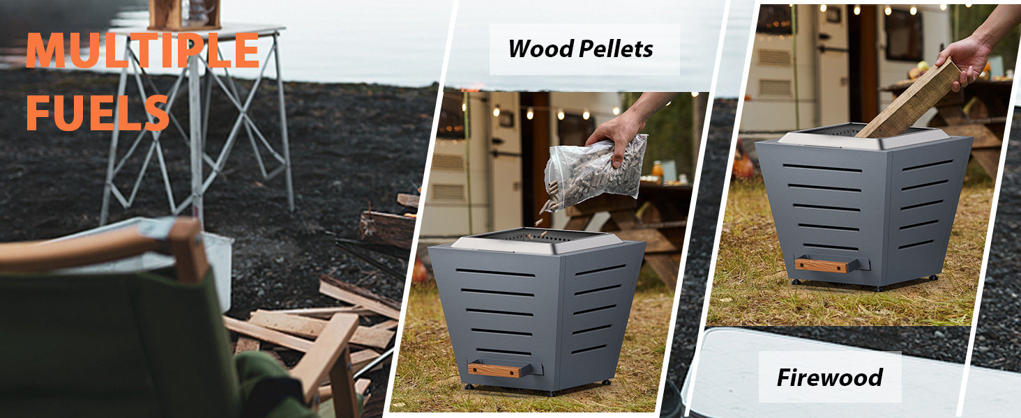 - Includes heat shield to protect surfaces and pull-out ash pan for easy cleaning