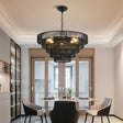 This 24' pendant light chandelier features a rustic, five-tier design with black hemp rope, ideal for adding warm, textured lighting to dining rooms, kitchens, or entryways. Its blend of industrial and farmhouse aesthetics complements various interior styles.