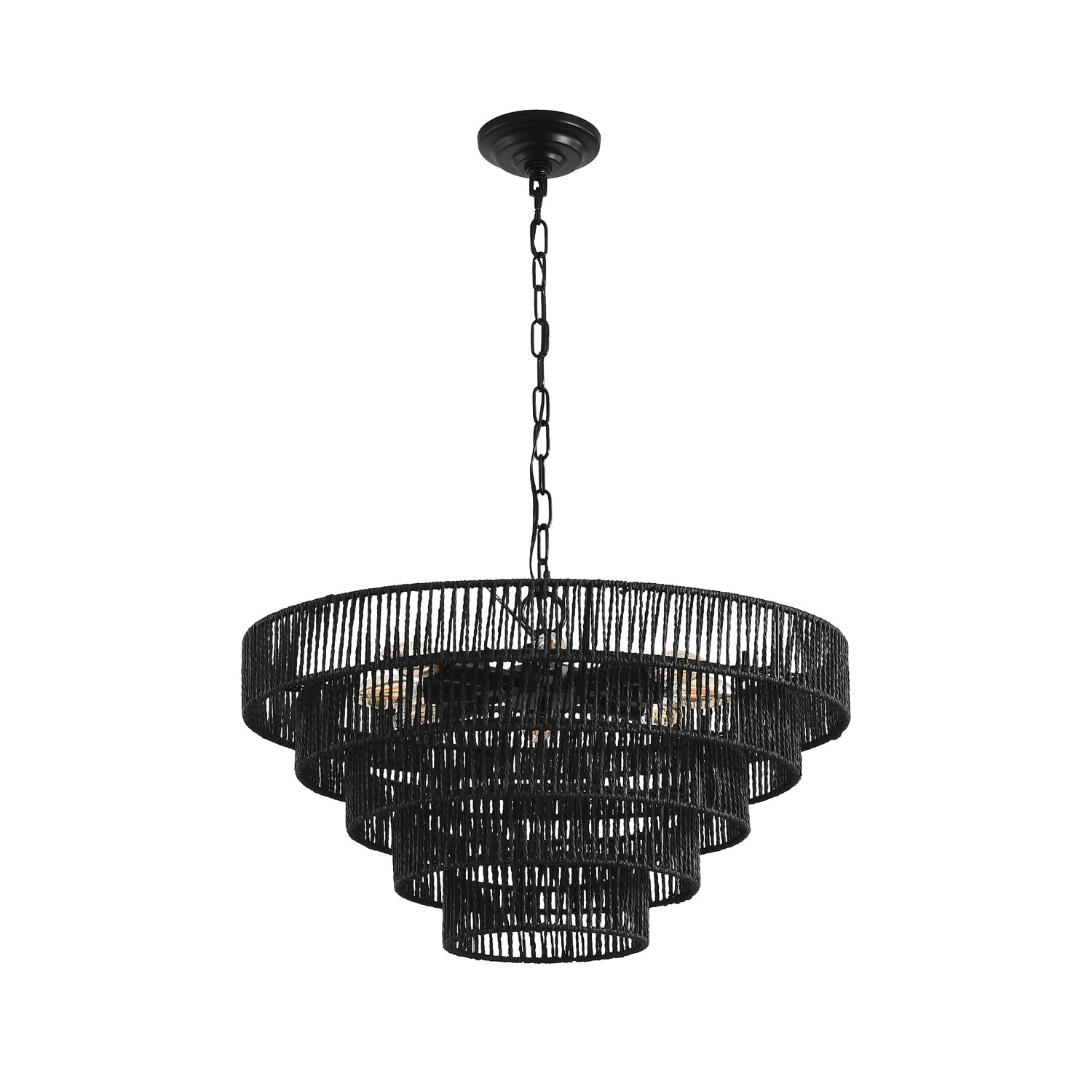 This 24-foot pendant light chandelier features a rustic five-tier design crafted from natural hemp rope, perfect for adding warm, textured lighting to dining rooms, kitchens, or entryways with boho farmhouse or industrial decor.