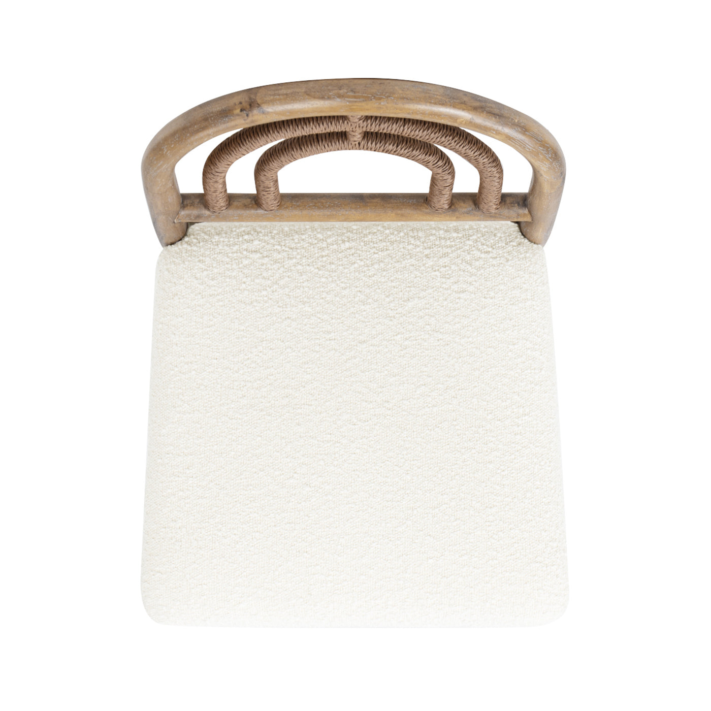 - Unique arched back wrapped in rope for added texture and visual appeal