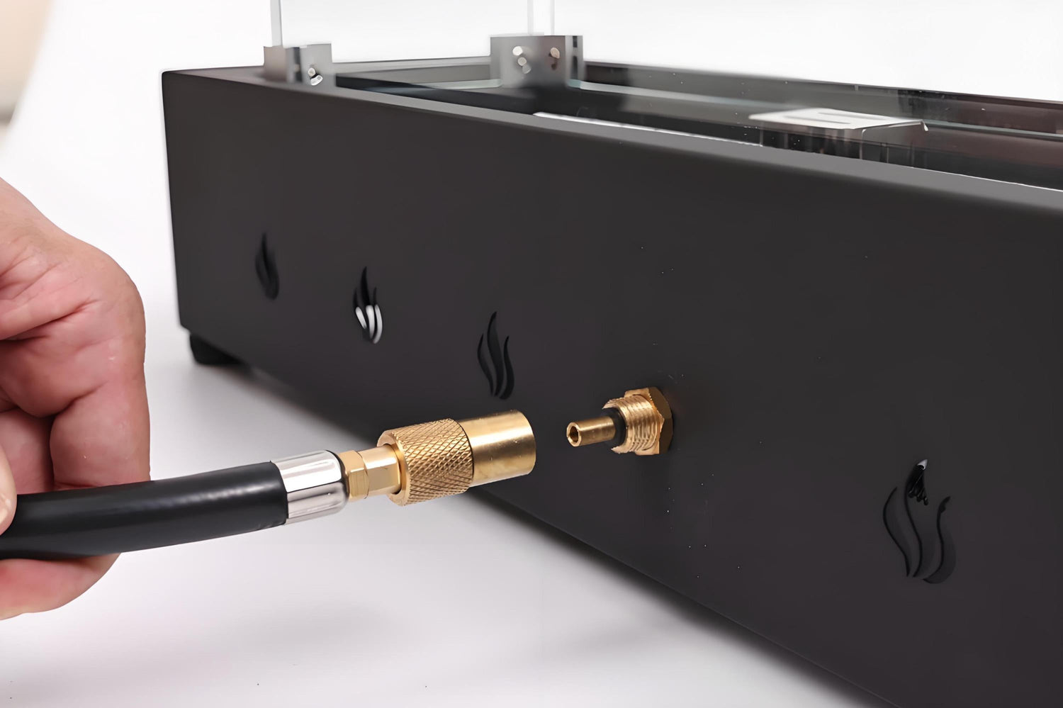 Product Features 1.Wind-Resistant for Steady Flames – A key highlight is the patio fire pit including tempered glass wind guard: it effectively shields the flame from windensuring a steadynon-stop burn. Whether you’re unwinding on a quiet outdoor evening or hosting a small gatheringyou can enjoy consistent warmth and a welcoming glow from the gas stove—no interruptions. 2.Compact Size with Strong Heating – It delivers steady warmth via a 40000 BTU outputideal for small outdoor get-togethers or relaxing alone. This outdoor fire pit is made of sturdy iron; it has a sleekspace-saving design that fits easily on any patio table or outdoor surface. The efficient burner guarantees reliable ignition and a stable flamemaking it both a practical and stylish pick for your outdoor area. 3.Bottom & Side Conversion - This outdoor propane fire pit is designed with the regulator hose connection port initially located at the bottomallowing for direct fitting onto tables with umbrella holes. If your table does not have an umbrella holeyou can easily remove the bottom port bracket and secure it into the side holeconverting the regulator hose connection to a side connection. This propane hose connection uses screw-thread connect; it is easy plus in and out. 4.Durable for Year-Round Use – Built with a tough iron framethis fire pit handles all weather conditions with ease. Its strong construction ensures it works reliably outdoors year-roundholding up well in both sun and rain. It’s the perfect long-lasting heating solution for anyone who values durability and dependability. 5.Unique Eye-Catching Design – This 28-inch rectangle fire pit stands out with its one-of-a-kind appeal. When paired with volcanic rocksit becomes an attractive visual centerpieceadding a touch of natural beauty to your outdoor space. While it doesn’t come with a cover to convert it into a side tableits dedicated use as a gas stove offers an unbeatable heating experience. Description