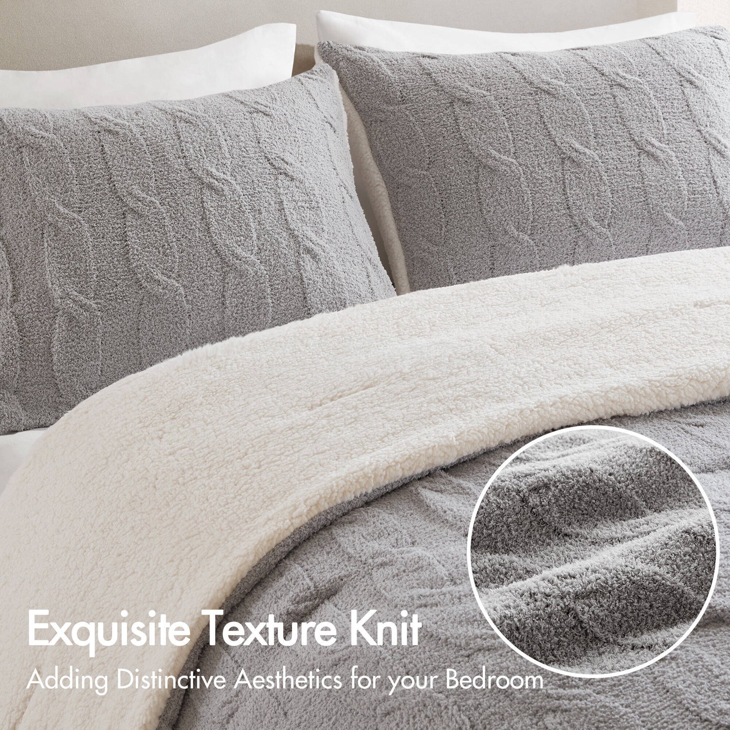 100%polyester 420gsm Solid feather chenille cable knit to 100%polyester 200gsm sherpa Ivoryknife edgejumptack stitchfilling: 100gsm poly fiberSham: knife edgeoverlap openning at back